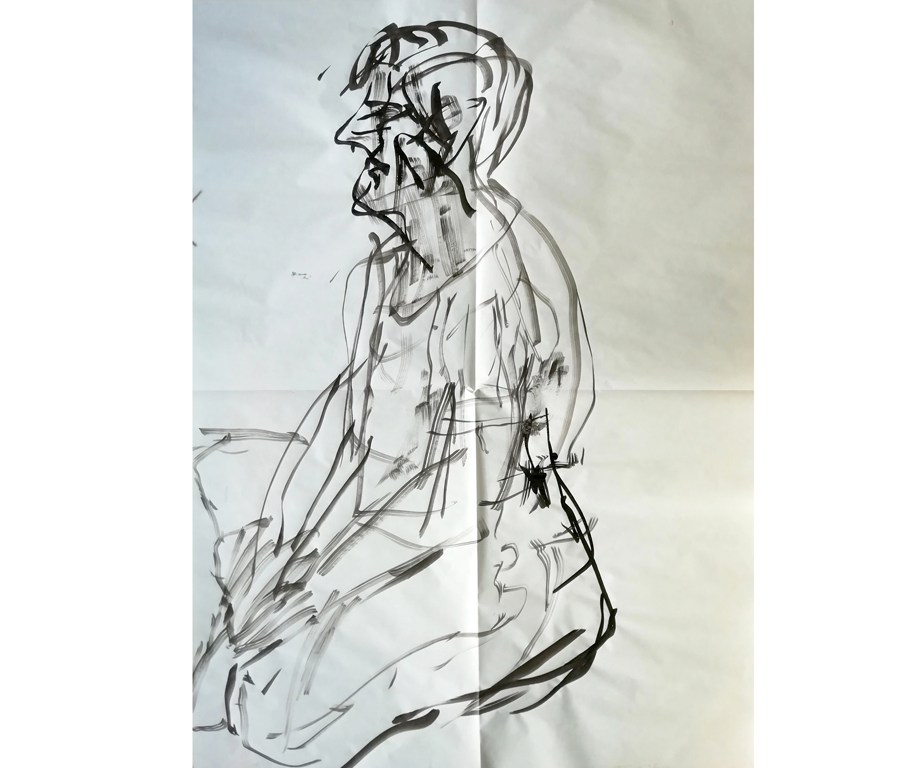 Aileen - drawn with ink and a brush attached to a long stick