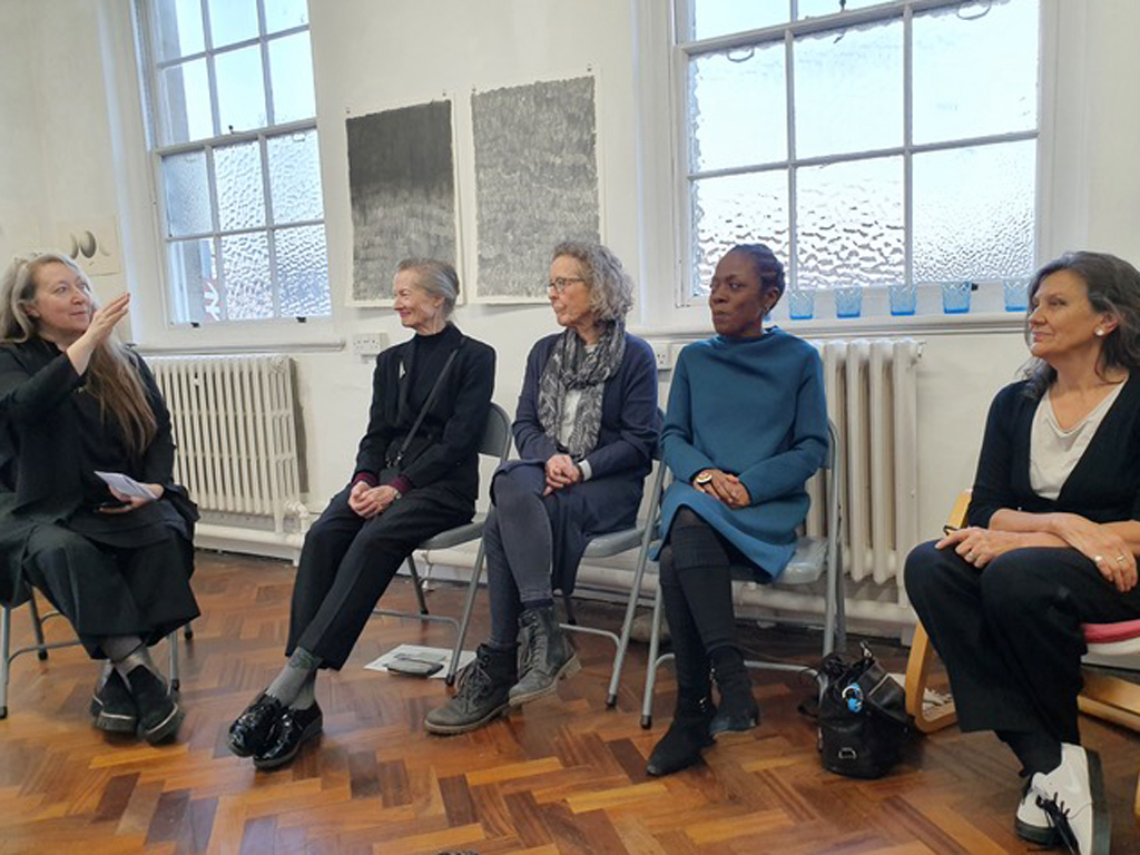 The artists with Anita Taylor during a discussion of the Thinking Graphite show.