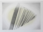 10th Drawing responds to Peter Pilgrim’s beautiful monochrome abstract work where he has taken angled thick black lines and in a series of steps moved them to a vertical position. I have taken a straight line and angled them by folding the drawing… It is in fact a drawing of a drawing… Pencil on paper.